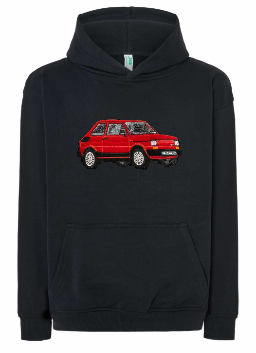 Bluza Kangurka z kapturem Czarna – Fiat 126p Haft na dwóch stronach -013